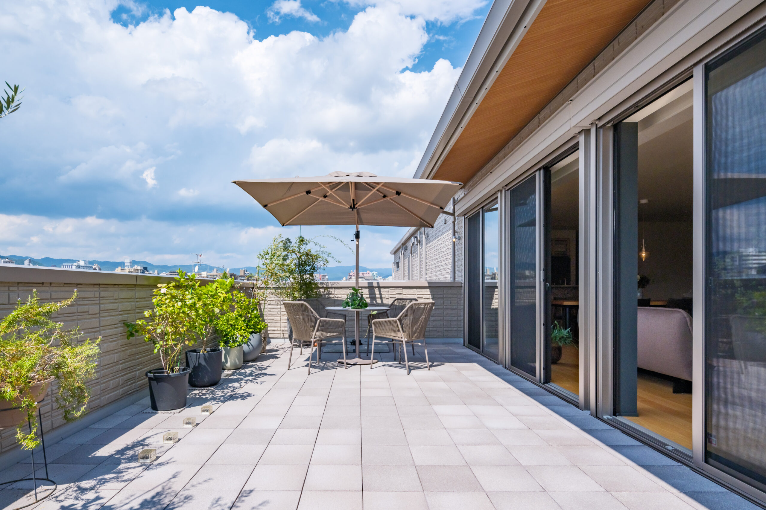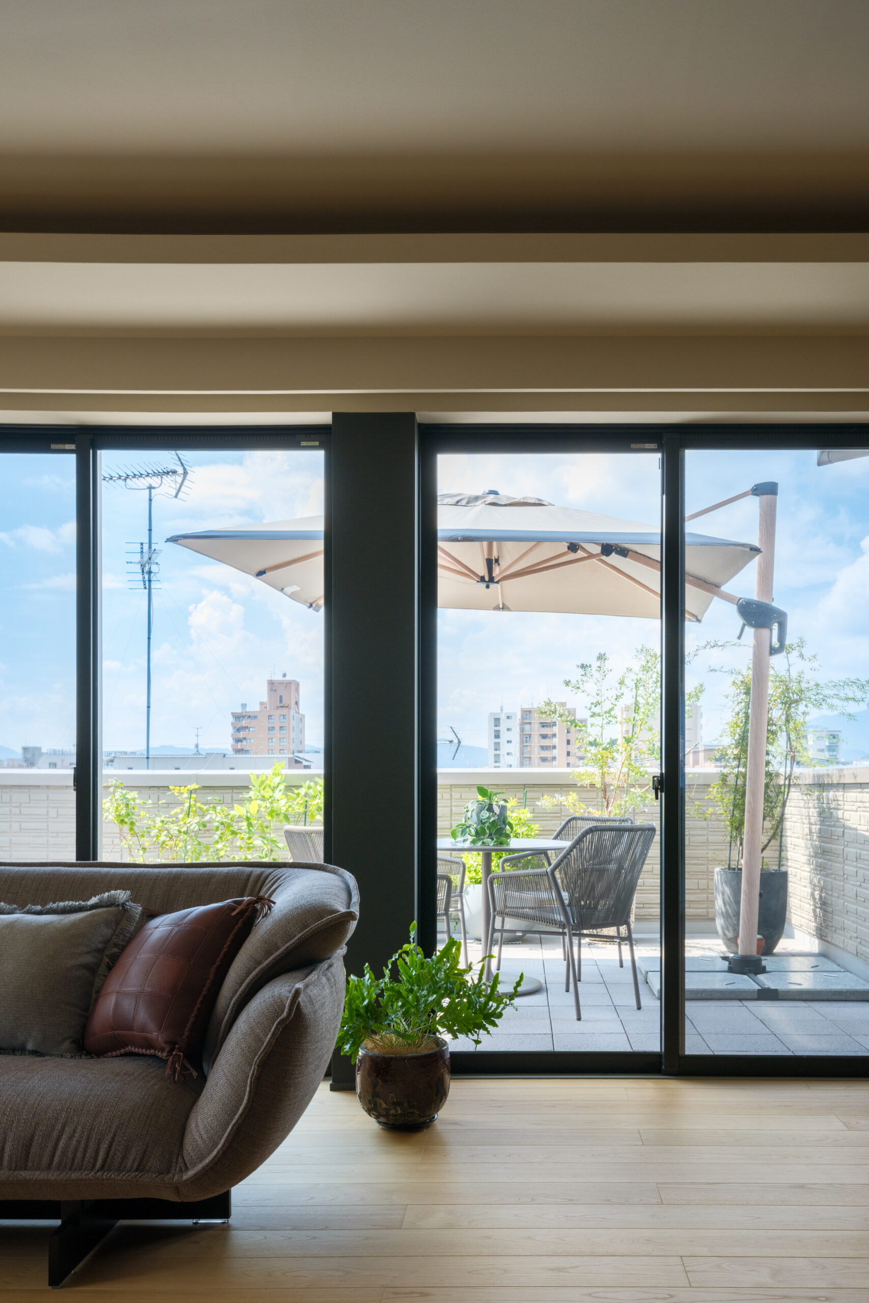 大きな窓からの景色をしっかり感じられる