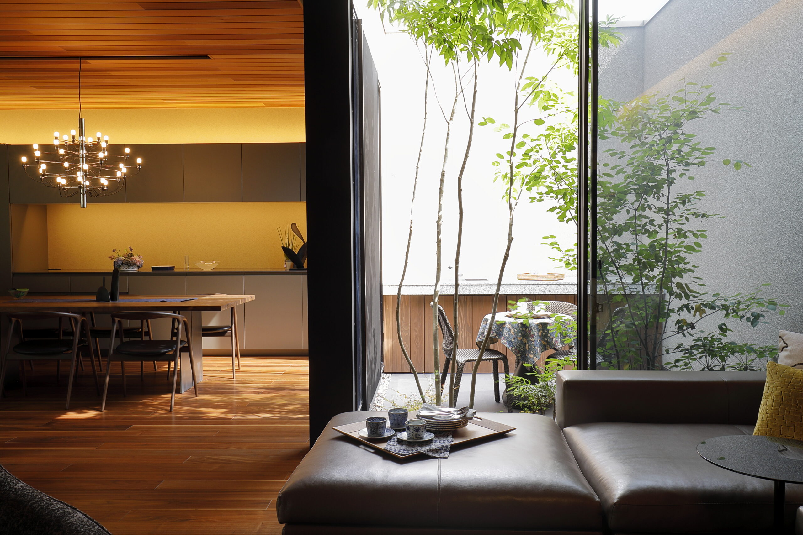 2つのお庭を取り込んで完全にプライバシーが守られつつも開放感のある空間はまるで森の中にいるかのような気持ちよさです。
