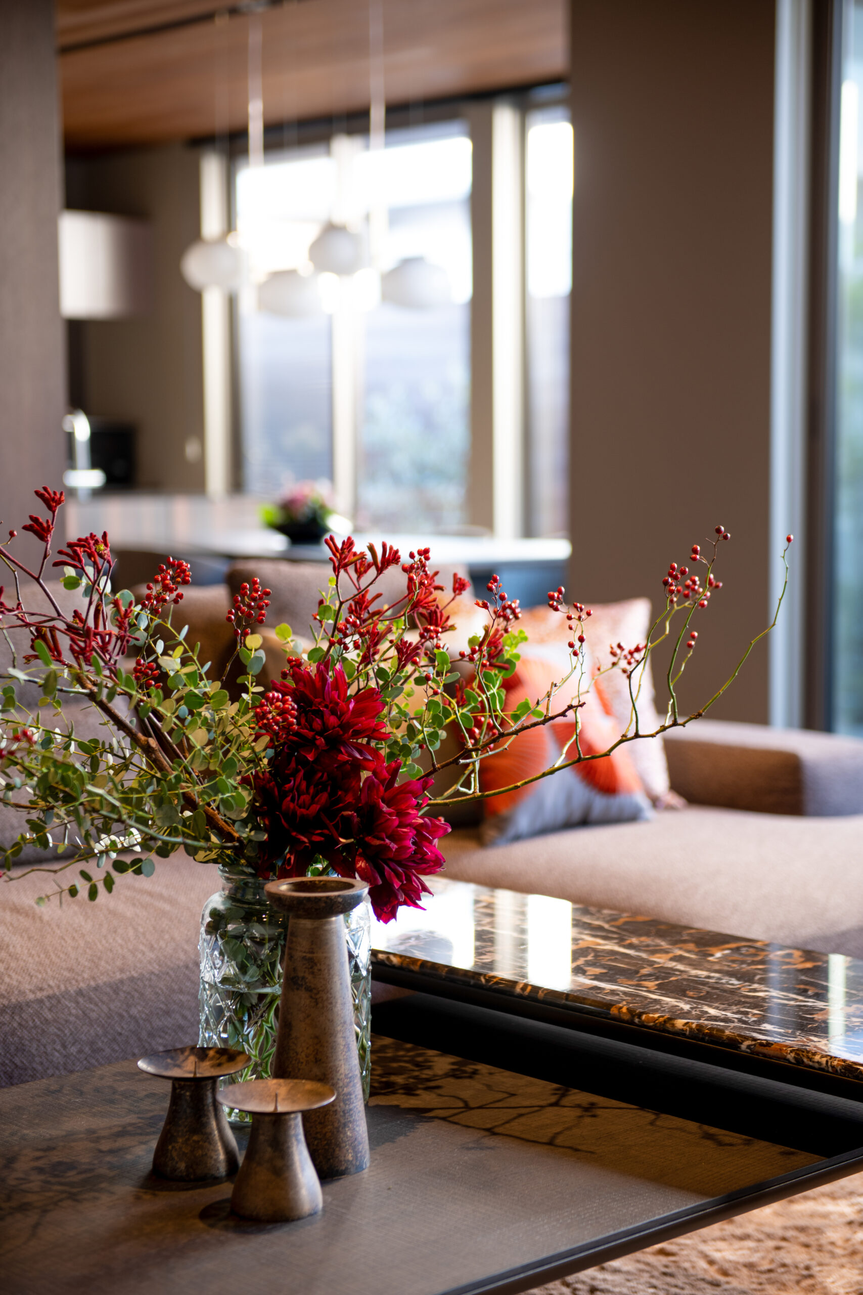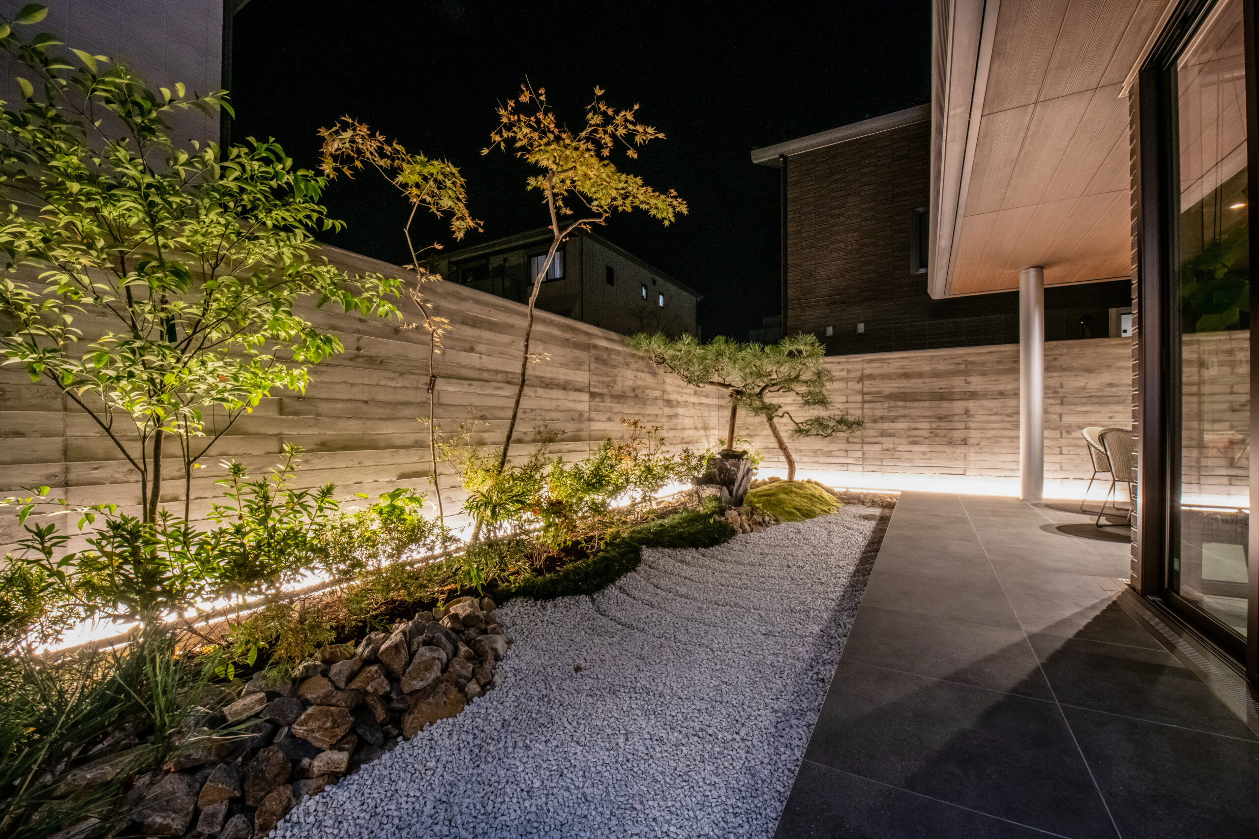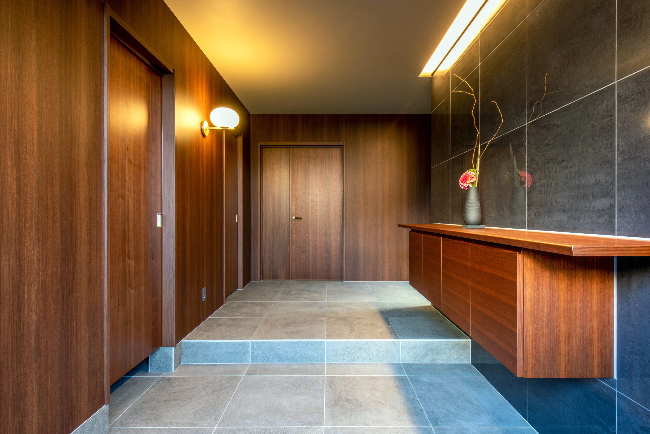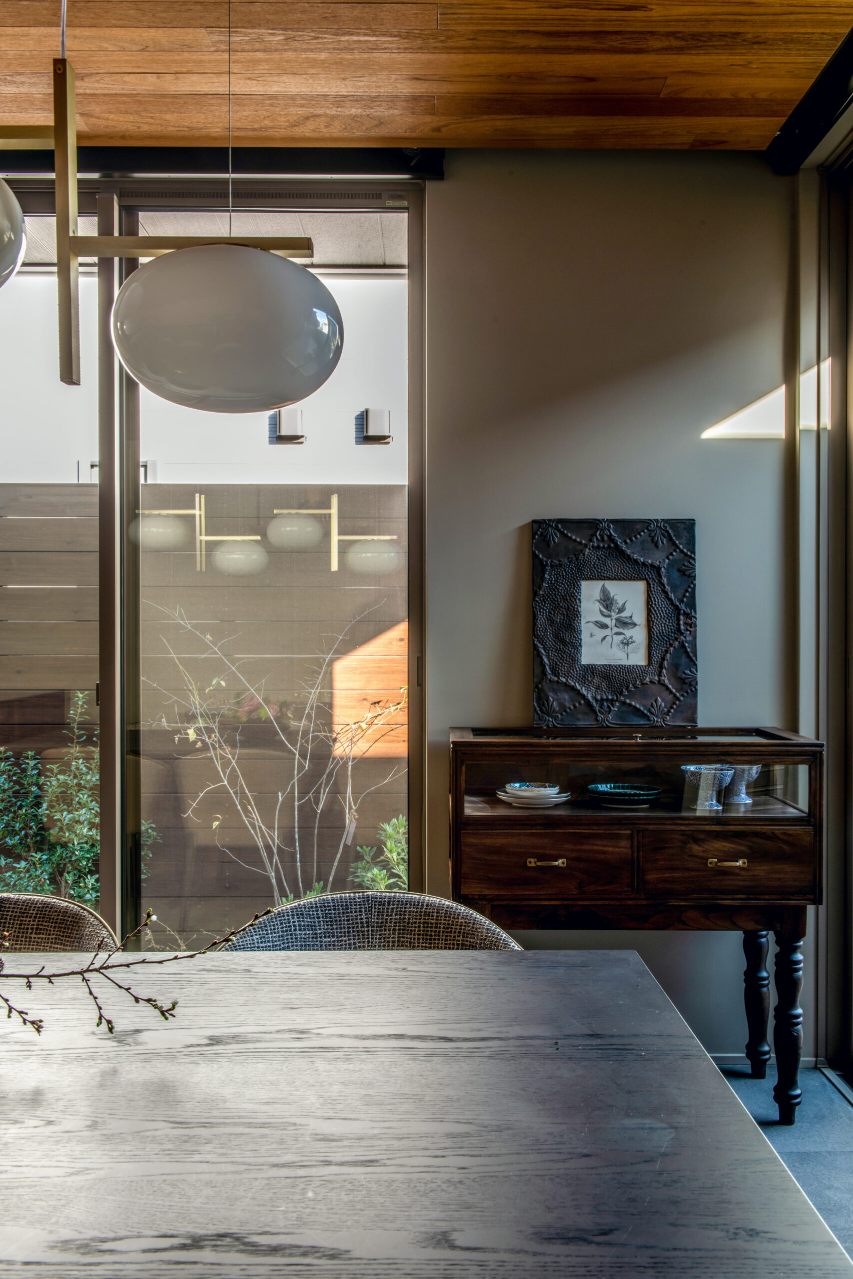 開放的なLDKは壁と天井に板張りを施し重厚感と