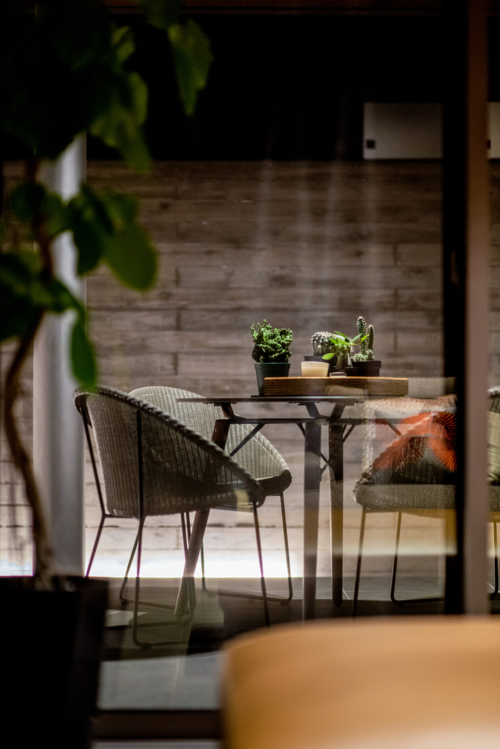 テーブルの特徴的な大理石はポルトロロイヤル。