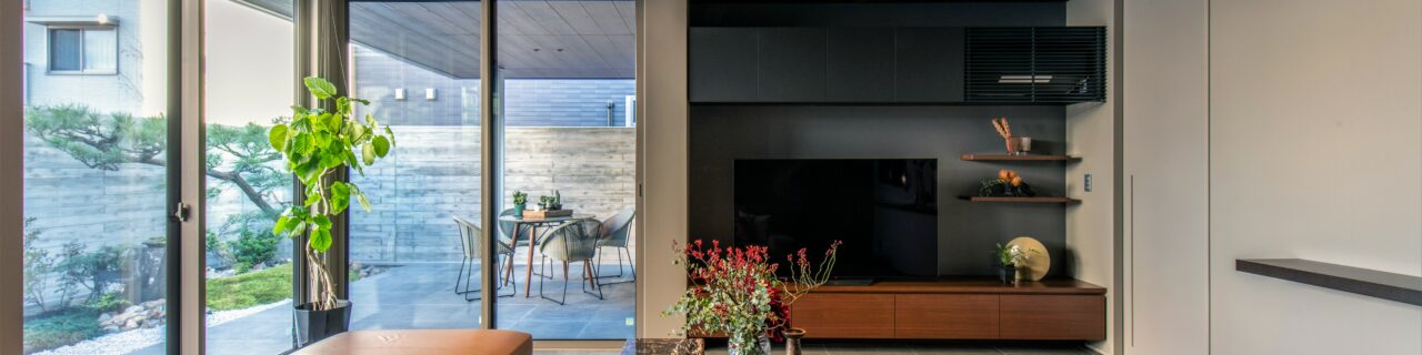 開放的なLDKは壁と天井に板張りを施し重厚感と