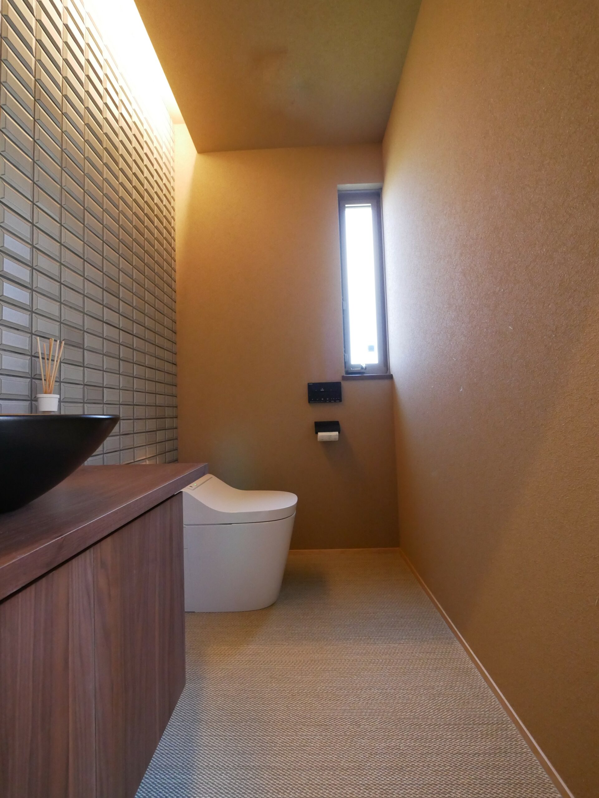 広々とした玄関土間は三和土の仕上げにし、アンティークの米沢箪笥とのれんを設え懐かしい雰囲気に仕上げました。