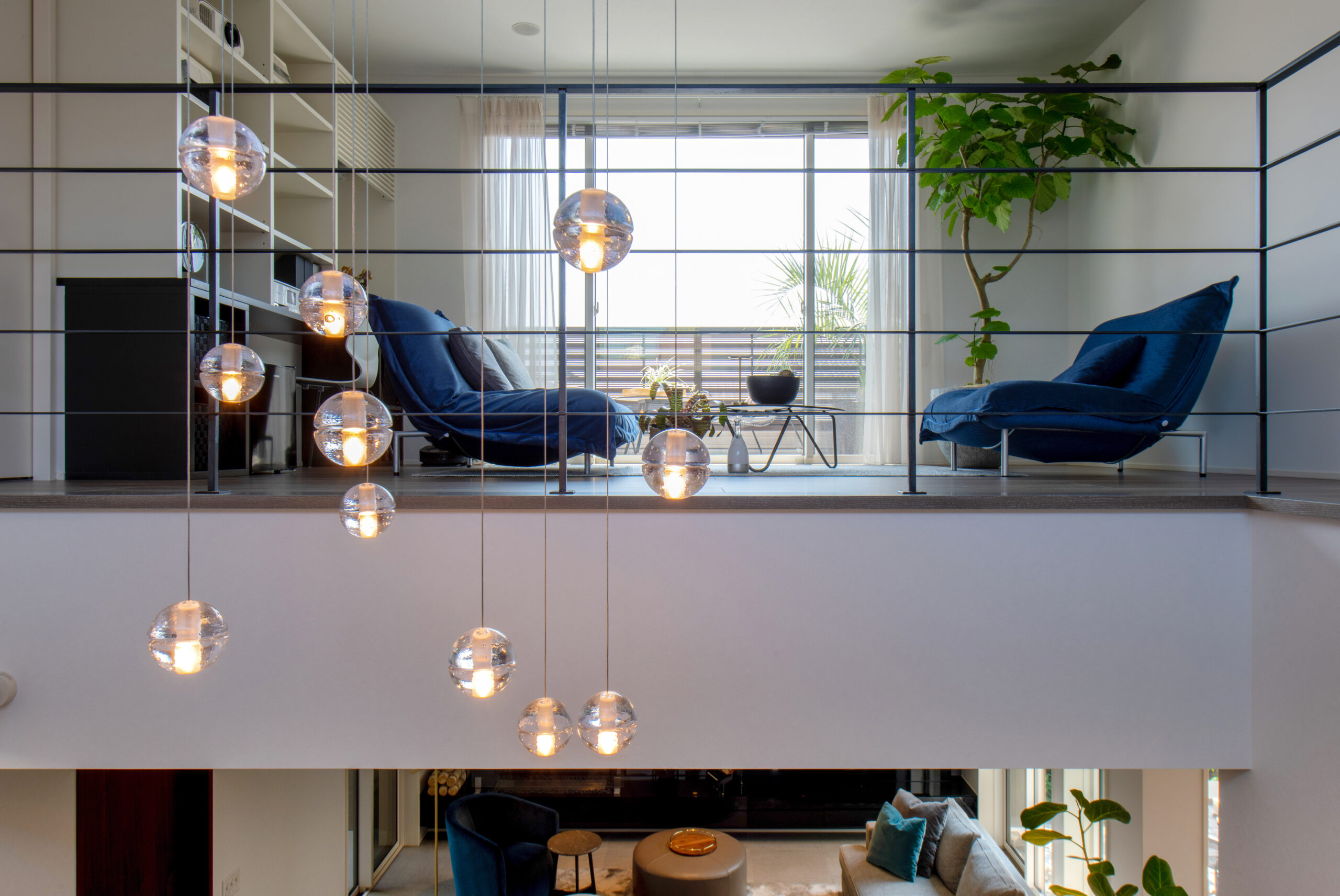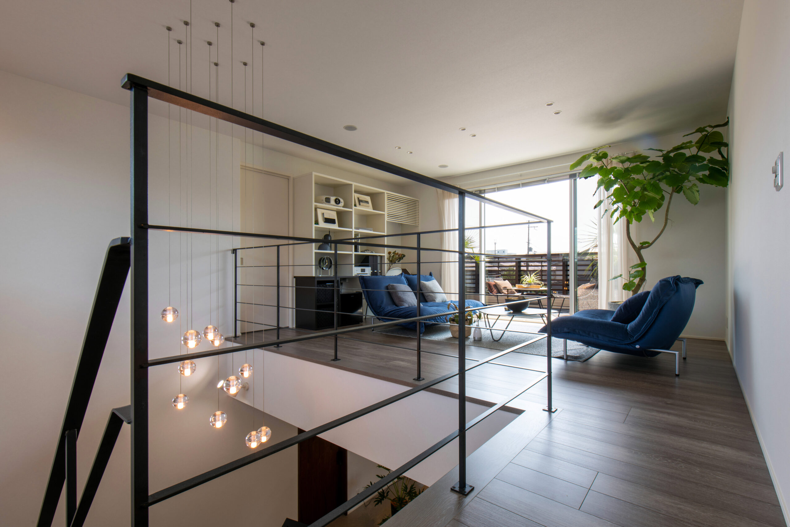 2階のサブリビングは映画を楽しんだりバルコニーでくつろいだり。