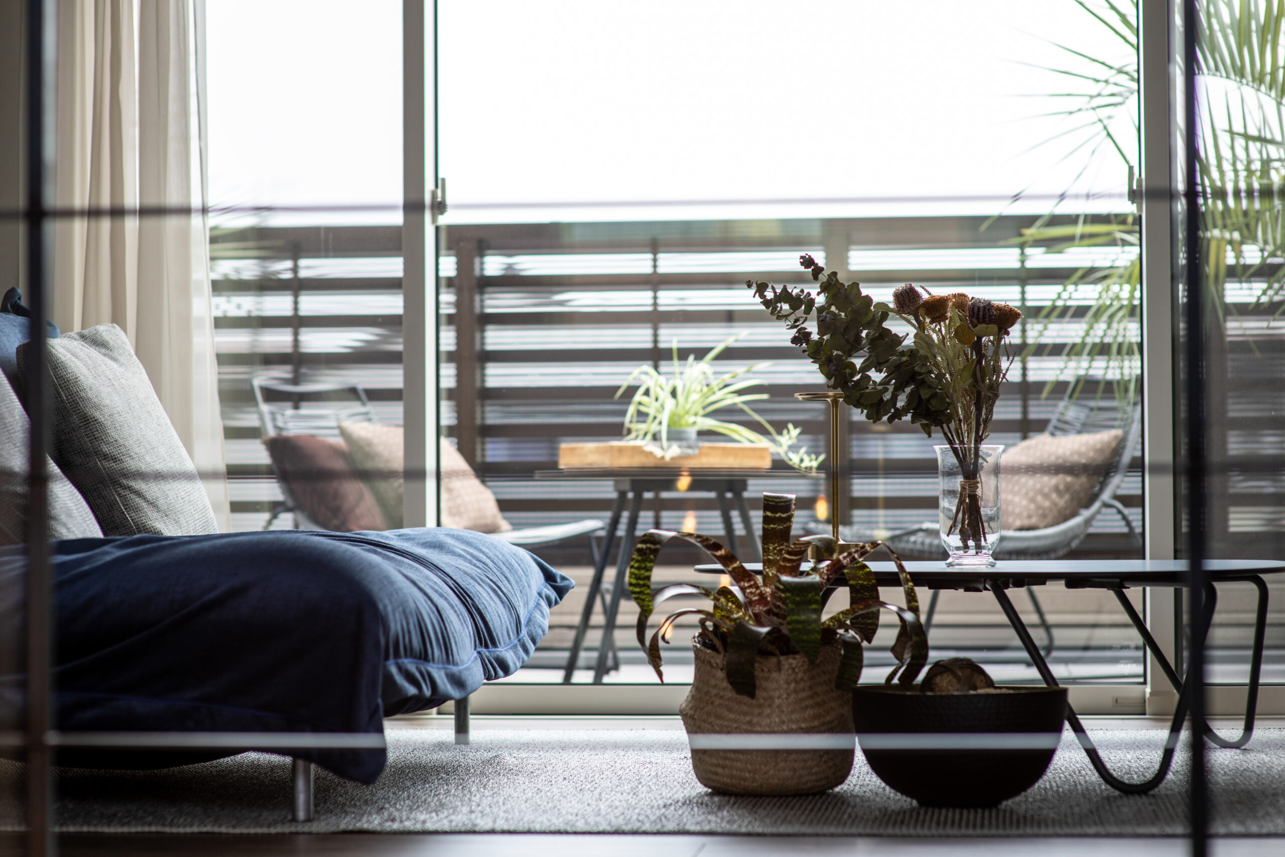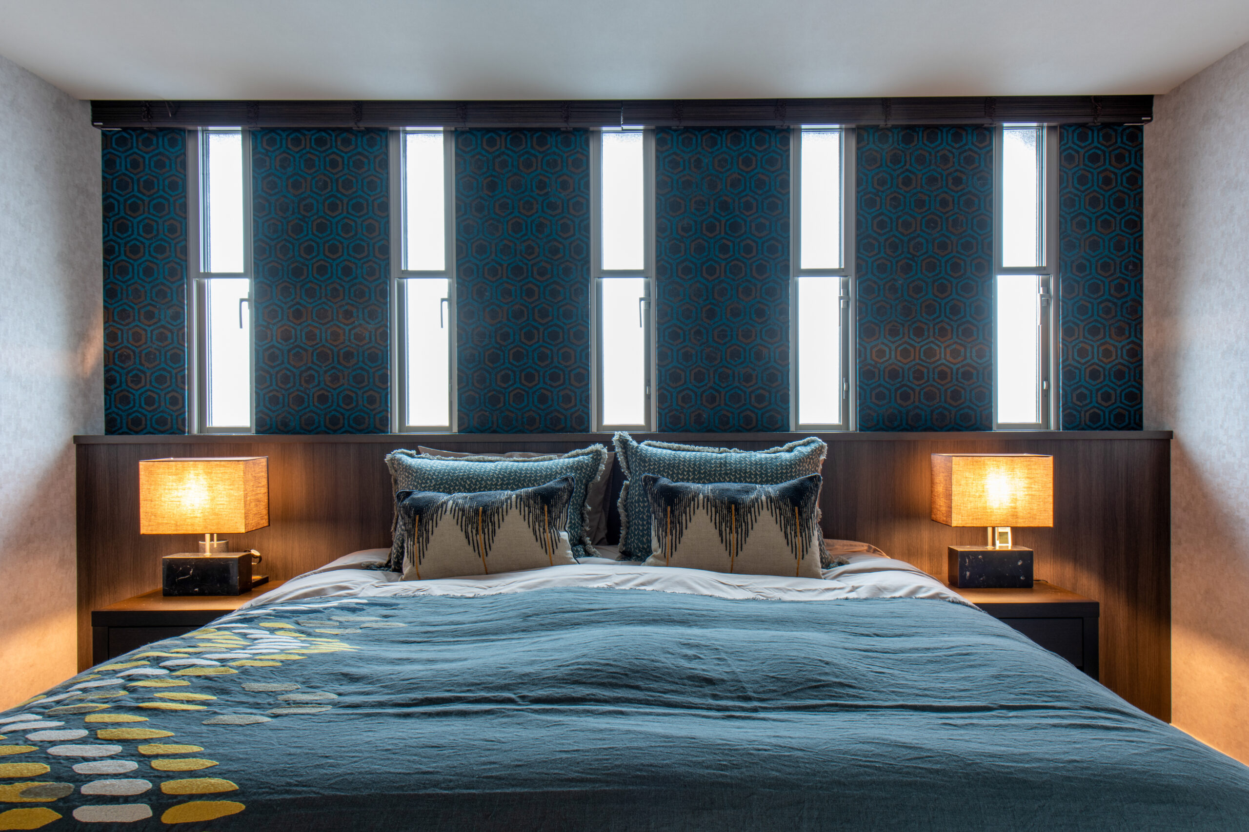 主寝室はベッドメイキング含めトータルコーディネートでムードのある空間に仕上げました。