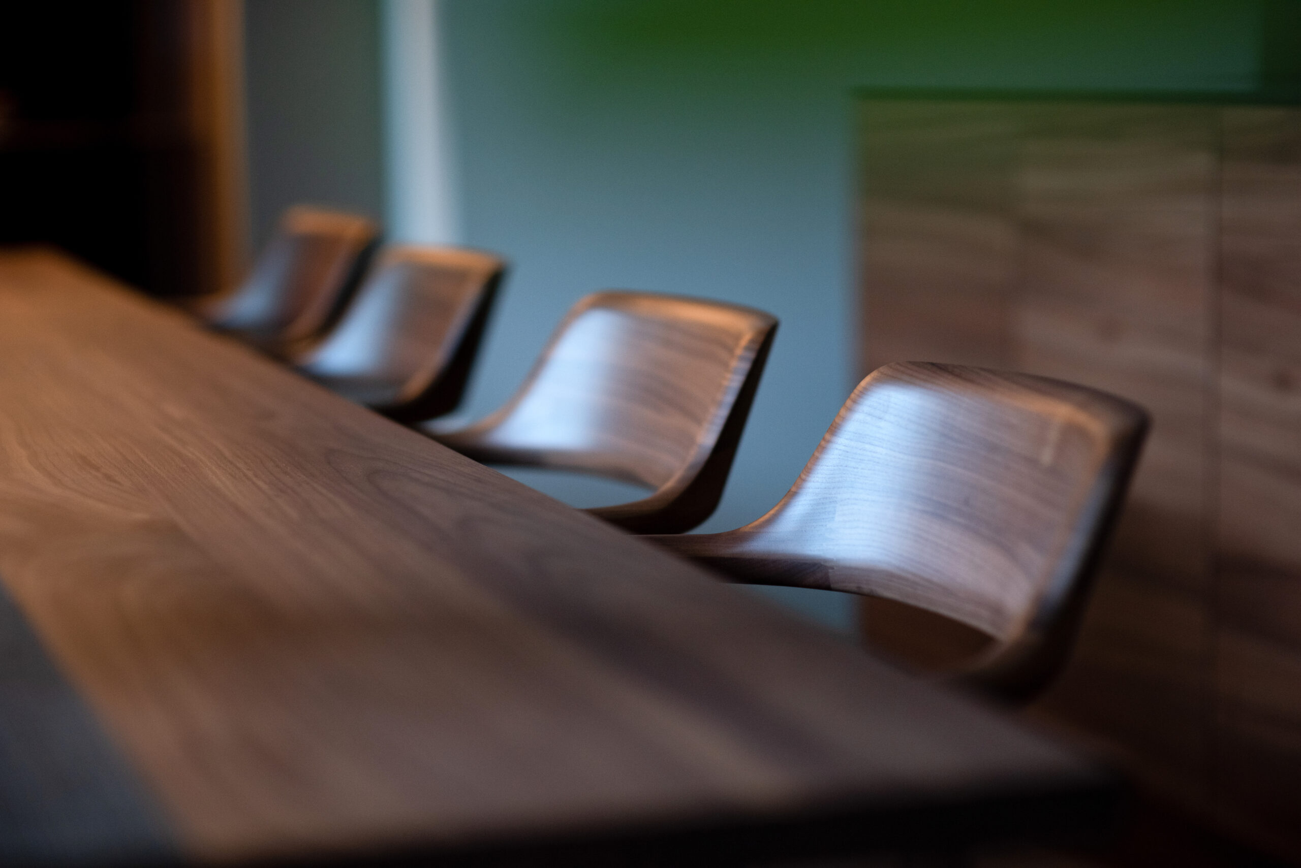 当初から3mのダイニングテーブルをご希望され、木目の美しいウォールナットをチョイスし、イスはデザインと機能の両方を兼ね備えたHIROSHIMAです。