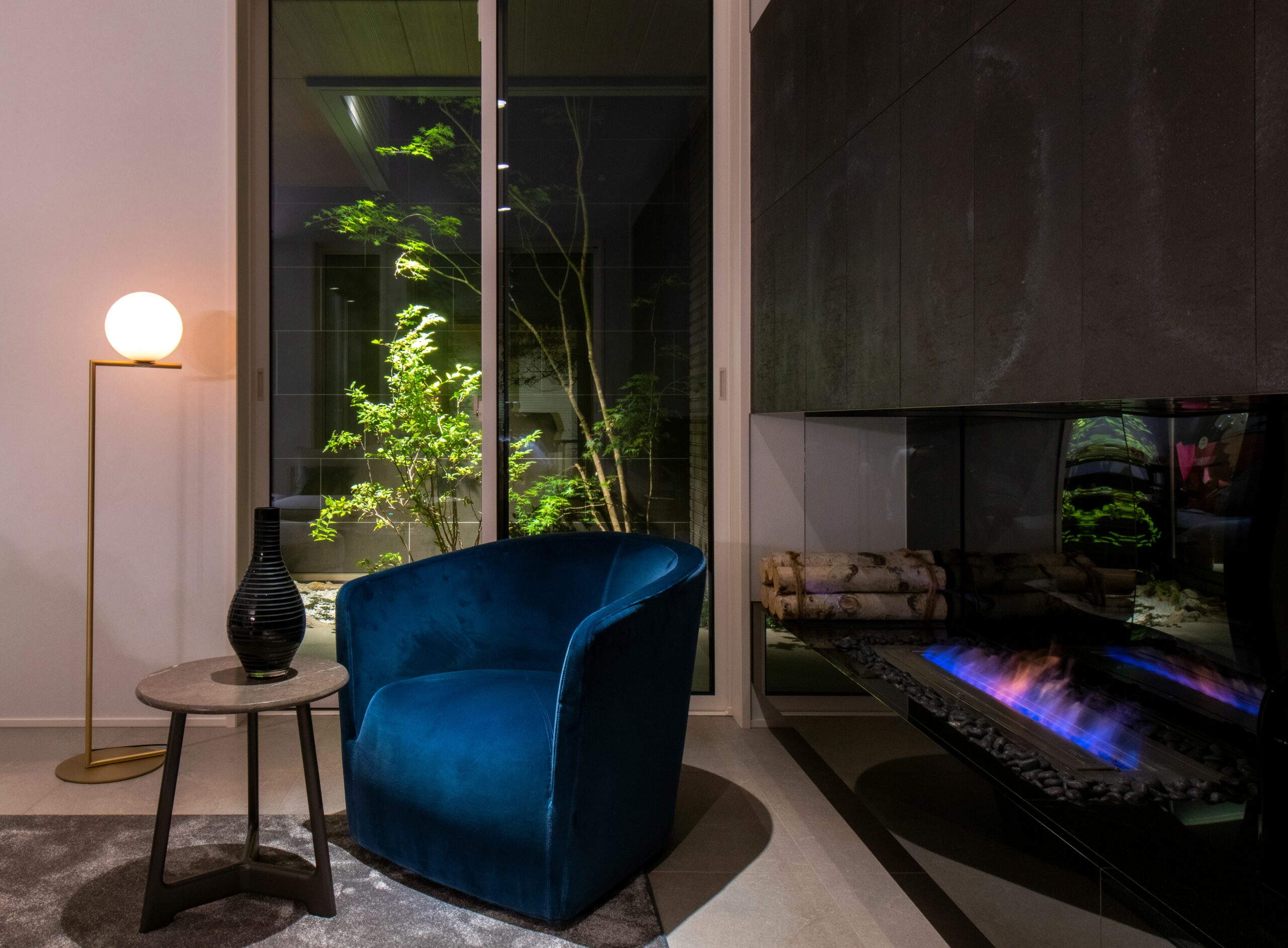 ご家族全員がお好きなブルーをテーマカラーにパーソナルチェアやクッションに取り入れました。